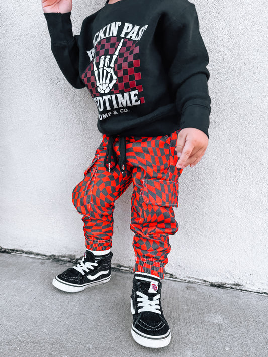 Love Burst | Red Checker Cargo Jogger Pant